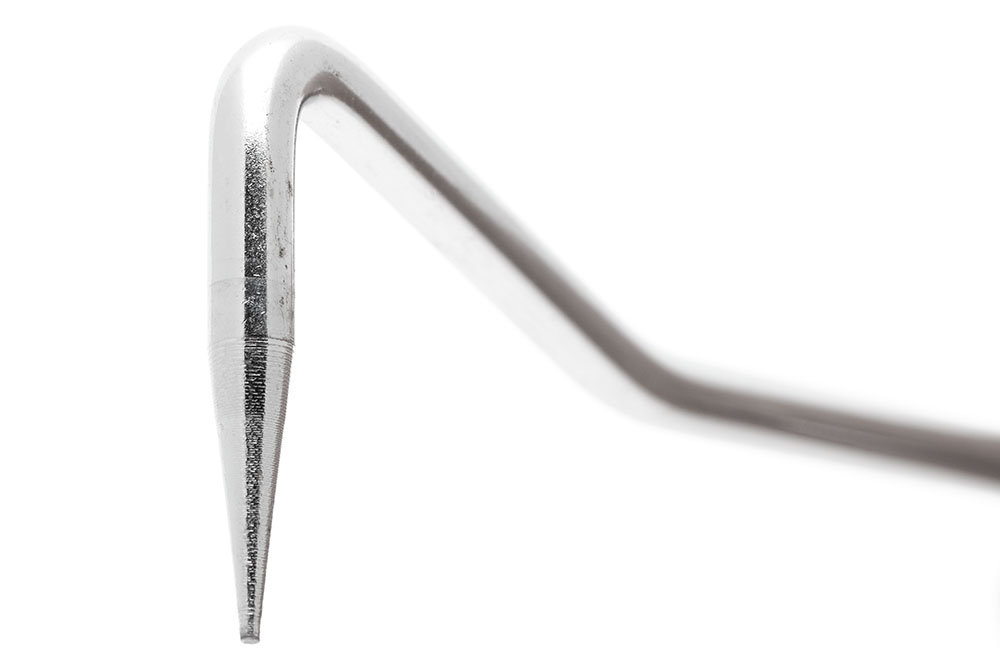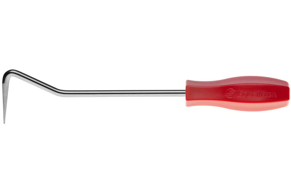 This hook tool measures a long 7" from the bend to base of the handle of the tool. Technicians have asked us for longer versions of our hook tools and this update is long enough for there needs. The hook is 1-1/2" long from curve to tip and is bent in only once so it will work equally well in either direction.